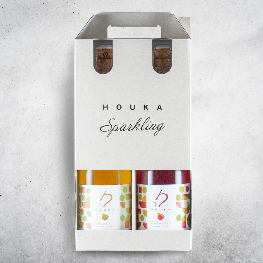 「勹果(ほうか)スパークリング 紀州うめ」の赤と白、二つの個性を一度にお楽しみいただける特別なセットです。